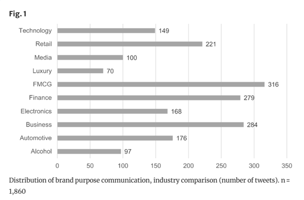 As your business grows, social media users may take a closer look at the higher purpose of your brand. Depending on your business, this discussion could be a main focus of your social media or on the backburner. The following table from the How corporate brands communicate their higher purpose on social media: Evidence from top global brands on Twitter article, reflects how important brand purpose is depending on your industry.