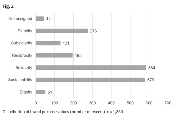The study showed that “…the value of solidarity dominates across all sectors, especially in the FMCG and financial services sectors. Corporate brands in this sector communicated primarily about their own philanthropic efforts (e.g., sponsorship, donations, fundraising, etc.) and their adoption of social engagement.” (Rudeloff, 2024) With this data, we can infer that solidarity would be a safe bet for your business brand.